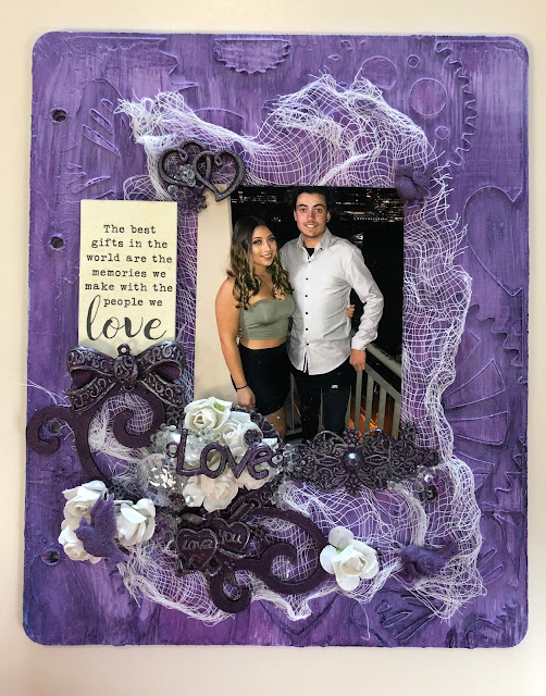 I used another Memory Maze stencil this time Noughts and Crosses to make it look like hugs and kisses I also used some of the Memory Maze chipboard through out the album